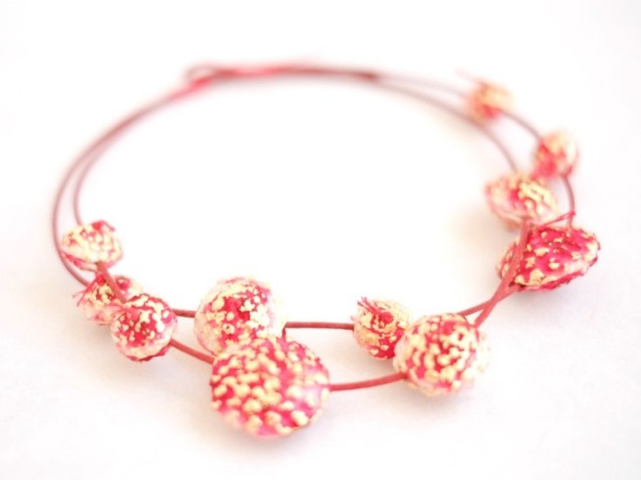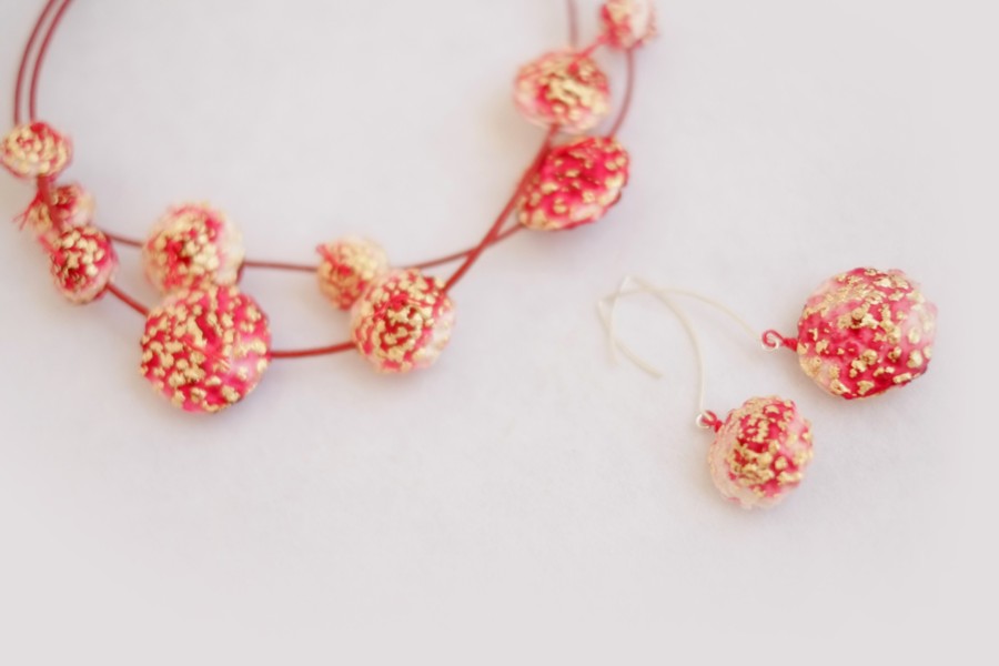 Each piece of jewelry is unique and entirely handmade with natural dyes.
