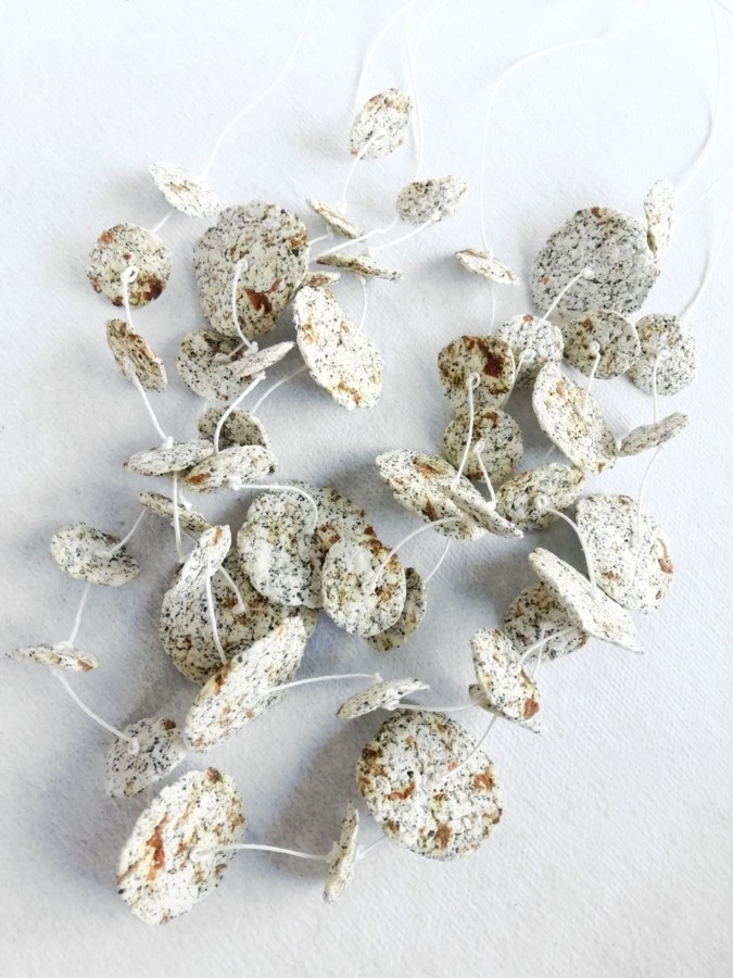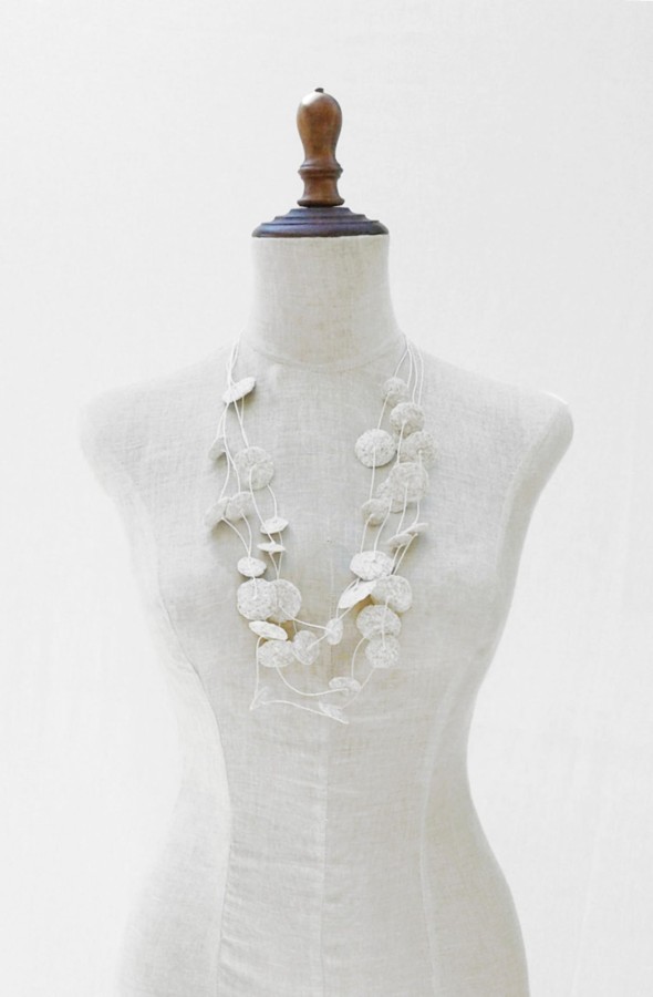 El trabajo de Begoña Rentero está inspirado en las formas orgánicas de la naturaleza, realizados de papel para representar la sutileza de la naturaleza.
